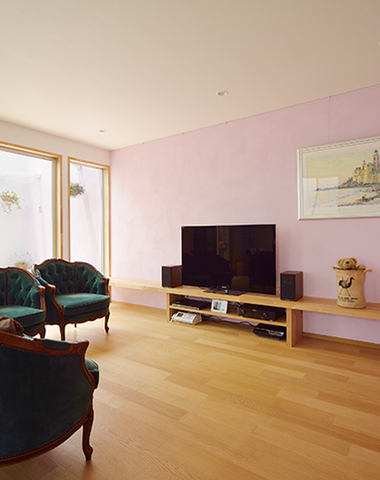 建具と家具で色使いを楽しむリビング