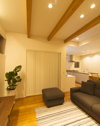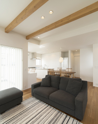 梁がアクセントのリビング