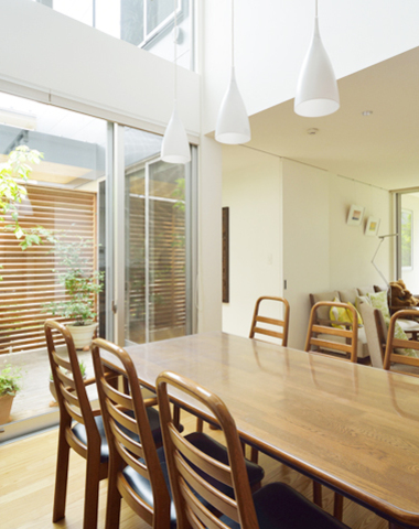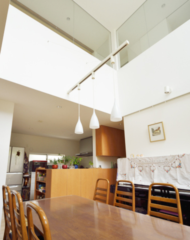 吹き抜けが明るいダイニング
