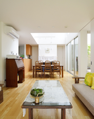 中庭につながるリビング