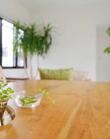 植物がたくさんおかれた明るいリビング