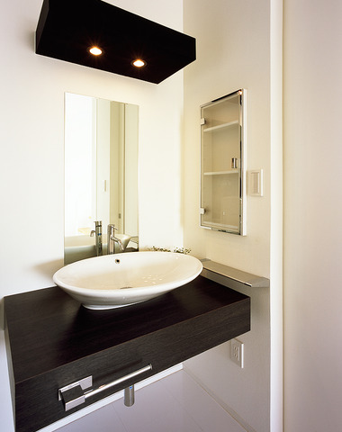 浮遊感ある楕円形の洗面ボールが、造作洗面...