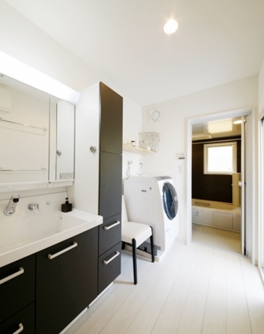 脱衣室と洗面所に仕切りを設けた、無駄のな...