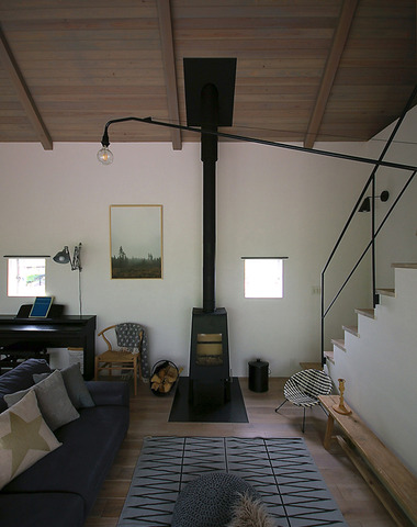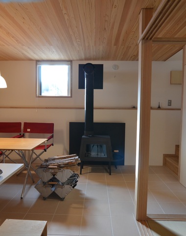 薪ストーブのある半地下空間