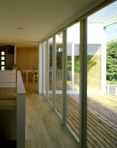 吹き抜けのウッドデッキ