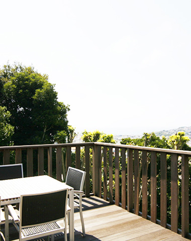 ウッドテラスからのぞむ鎌倉山の景色