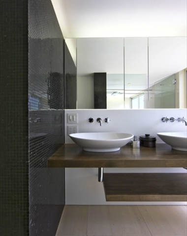 浴室・トイレと統一された黒いタイル