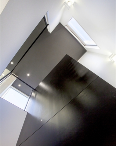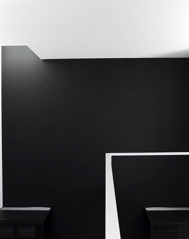 黒と白の壁に当たる光が、壁に立体的な表情...