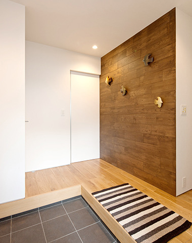 木仕上げの壁が優しい印象の玄関ホール