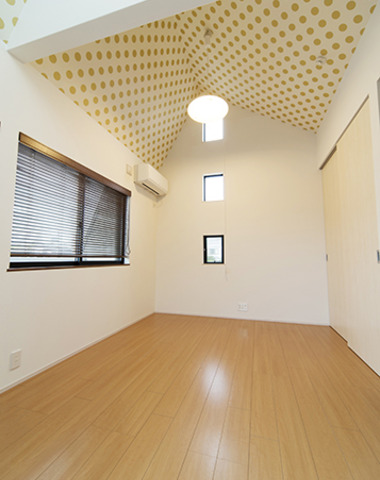 開放的な吹抜にドット天井の子供部屋