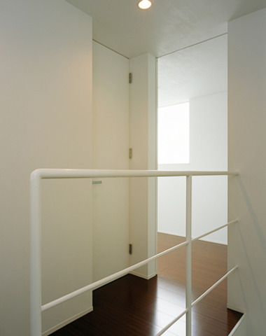 壁の色と合わせた白い手すり