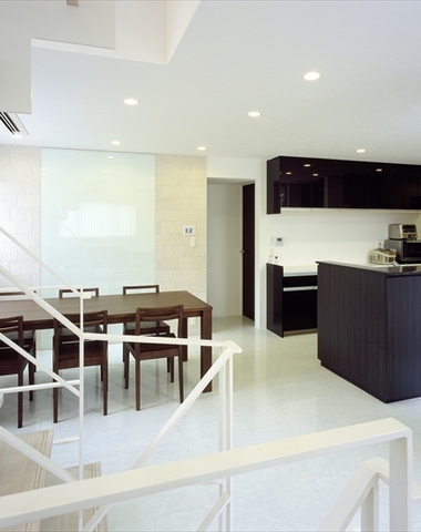 光の映る壁を設けたダイニング