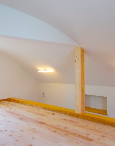 外観屋根の曲面が室内のロフトにも