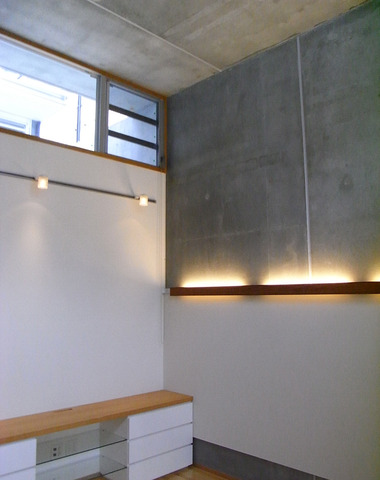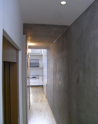 コンクリート打ちっぱなしの表情が美しい廊...