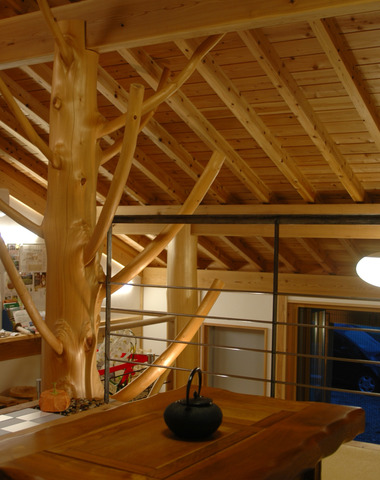 2階は小屋組み現しが空間のアクセントに