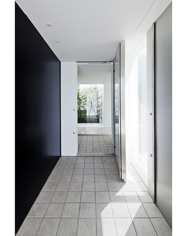 黒い壁が空間を引き締めるエントランス