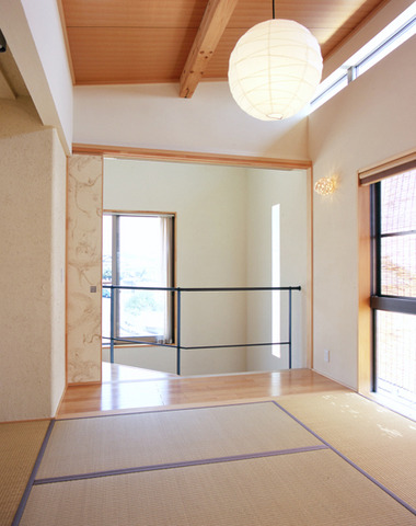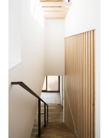 天井垂木現しと縦格子と丸鋼手すり