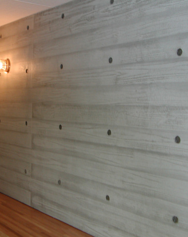 小幅板の型枠でコンクリートの壁に木目の表...