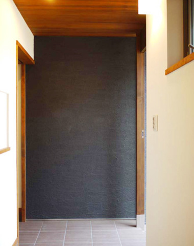 内壁の左官には大きく分けて、漆喰・珪藻土・土壁が有ります。漆喰は白く美しい仕上がりになる材料で、調質・消臭効果が有ります。珪藻土は藻類の化石の堆積物で、調質・消臭・防カビ性能に優れている健康材料です。土壁も同じく調質・消臭・防カビ、そして防火性能に優れた材料です。