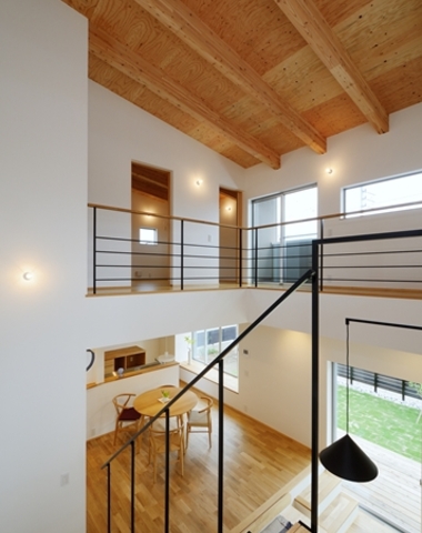 野地合板あらわしとした吹抜けの天井