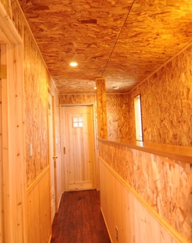 合板系の内壁材には、ラワン合板・シナ合板・木のスライスチップを積層したOSB・キッチンパネルに使用されるメラミン化粧版・草から作ったハーベストパネル等様々な種類が有ります。