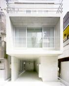 建坪約15坪の狭小住宅です。 最小限の要素で最大限の空間を切り取る為に、ほんの少し壁や天井を傾けることで、合理的でいてかつチョット不思議な空間が生まれました。 また照明を極限まで絞り、コンクリートのエッジを際立たせつことにより、陰影のメリハリの中でより一層その本質を際立たせています。