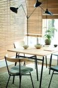 木部の仕上げや、脚部のブラックフレームのデザインを揃えて、それぞれの素材が持つ魅力とオーセンティックなフォルムが、エスプリを漂わせるダイングセット。しっとり落ち着いたトーンの、ナチュラルモダンな空間に、ユニークな立ち姿のフロアランプを合わせて、細心のブラックフレームが空間に軽やかさを演出しています。 Photo:Masahiro Sanbe