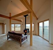 薪ストーブのあるリビングからは、北アルプスの絶景を独り占め。