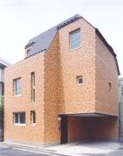 都内住宅密集地の角地に建てた住宅です。建ぺい率の許す限り建築面積を広く確保した住宅です。駐車場部分は出入りしやすいようにすることと、残りの建物面積を大きく確保するために、上部構造をボイドスラブ構造をし、片持ちの構造とし敷地を有効に使っています。