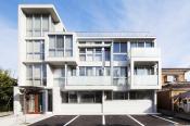 1階はオフィス、2階は4戸の共同住宅があり、3階は施主の3世代の個人住宅、地階には地域の集会機能を持つ複合建築物である。