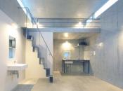部屋はワンルームなのですが、ロフトを設けたりハイサイド窓より光を採り入れたり、住宅の質をもつ居室にしています。