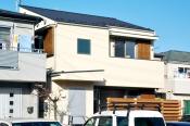 敷地は密集した住宅地で、西側からアプローチする旗竿状になっています。建物は幅3.5間、奥行き3.0間あまりのシンプルでコンパクトな2階建の住宅です。