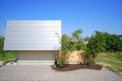 敷地東側には生産緑地である田園が広がり、夏場に風をうんでくれます。田園からふいてきた風は居間・食堂に導かれ、吹抜けを介して2階を抜けていきます。また西側には高い建物がないため、西日が容赦なく照りつけます。そこで屋根を折下げ、西日を遮蔽しています。この家の特徴的な屋根形状・ファサードは敷地条件によって導き出された形となっています。