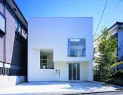 自転車を入れられる大きな玄関引き戸と左右にスキップするフロアが特徴です。 北側に面した敷地のため大きな開口から安定した採光を確保しています。 屋上にはルーフガーデンを設けアウトドアでの遊び場として利用されています。 ここはリビングとも窓でつながりアメニティの高い場所になっています。