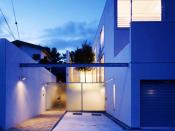 大阪府吹田市に建つモダンコートハウス。「白く明るく開放的なシンプルモダンハウスを設計して欲しい」これが建築主ご夫妻の最初のご要望でした。また大手ハウスメーカーに地下駐車場から直接ダイニングキッチンに行けることを希望したら無理だと断られたのでそれも解決して欲しいとの希望でした。日常の勝手口動線と非日常の客用動線がうまく配され、中庭を囲む明るく開放的な住まいが実現しました。