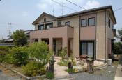 ワイドバルコニーのあるゆったりした造りのお宅です。田園風景になじむ外観のフォルムと色が落ち着きを感じさせます。