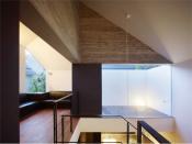 四周を建物で取り囲まれている与条件において、採光は建物上部から最大限取り入れ、下階へ届ける断面構成とした。最上階にはリビングを配置し、リビング上部の吹抜けに面したルーフテラスやリビングに連続したテラスから、更に吹抜けを介して下階のダイニング・キッチンへと光が降り注ぎ、風が通り抜ける。道路に面した南側には玄関以外に窓のない一見寡黙な表情の建物となっているが、内部は時々刻々と光と影が移り変わり、多様な表情をみせる空間となっている