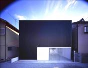敷地は西面道路の住宅密集地。道路向いの駐車場には将来建物が建つであろうこと、北隣の新聞販売店は早朝より営業されること。これらのことから中庭を設け、敷地全体を壁で囲み、外部には閉じる事にしました。東側の細い里道に対しては高さを抑え、中庭の「十月桜」は道行く人も楽しめるようにしています。居住空間は中庭に向けて大きな開口部を設け、内部空間の延長として感じられるようになっています。「シンプルな家に」というテーマの元(コスト的にも)、各室は極力扉で区切らないようにし、風通しの良い、ミニマルな空間に仕上げました。