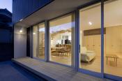 住宅が立ち並ぶ旗竿地に、 仲の良い4人家族のための住宅を計画しました。 ご希望である、一日を通じて明るい家を実現するため、 LD沿いの横に広い窓と、ダイニングに吹抜けを計画しました。 また、この吹抜けを介して和室・子供部屋まで一体利用できるため、 家族がいつもお互いの気配を感じながら暮らすことができます。