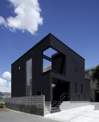 南側の店舗兼住宅の窓の位置と使用頻度の低い部屋の窓の位置を確かめ、光と風の道を設定し、西・北側は壁を立上げ中庭を作り西側の壁に開口部を開けたが西日対策としてアルミシェードを設け立面のポイントと目隠しを両立した。以前と同じ位置に商店街への通路を設け、通路と建物の間に駐車場(3台)を確保しました。土地のレベル差と植栽及び車により通路を利用する人からの視線を遮っています。