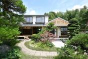 築40年の農家住宅のリノベーション物件。無窓居室や採光の無い部屋がある昔ながらの「田の字型」planの住まいに採光と通風を確保する工事と断熱改修工事、耐震補強工事を行ないました。3世代の住む本物件には生活パターンの違う家族に合わせた3つの断熱エリアを設け、それぞれの世代毎にストレスの無い計画としました。導光の為に設けた頂側窓に日射コントロール用の無垢材ルーバーがインプレッシヴな外観を持ち、内外共に無垢材を多く使った住まいです。また、手入れの行き届いた庭が観える深く薄い軒のかかった大きな濡縁と縁側を持つリビングは何とも気持ちの良い空間です。