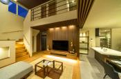リビングの高窓から太陽の光が燦々と降り注ぎ、室内は自然光のみでも明るくゆとりある空間に仕上がっています。モダンな和室とテラスを繋ぎ、よりリッチで開放感のあるデザインに仕上げています。プライバシーの確保、大容量収納の配置で心からくつろげる空間を演出しています。