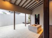 囲炉裏に火が入り、音楽が流れると、どこか懐かしい豊かな時が流れます。町なかであることを忘れてしまいそうな離れとなりました。