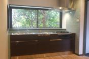 大正時代のファサードを残してコストを抑えながら再生した中古住宅。 耐震補強とともにキッチン、水まわりを生活スタイルに沿った設計としました。施主様ご自身で壁の漆喰、床の塗装をしていただきより愛着の湧く家づくりとなりました。 床を無垢桧板30㎜+漆喰壁に改修をしたことで室内に響く音楽が温かみのある音色に変わったとのことです。
