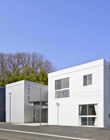 外壁四面及び軒裏まですべて杉板張りで仕上げた耐火木造建築物です。 内部もすべて自然素材の漆喰・無垢材で仕上げました。 都会の中にほっこりとやすらぎの空間が完成しました。